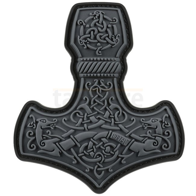 M-Tac Mjolnir Patch en caoutchouc grand modèle - Gris. Face avant en PVC avec dos à surface auto-agrippante. Dimensions : 90 x 80 mm.