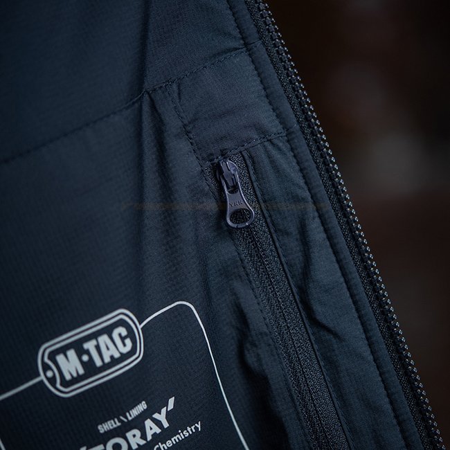 Veste M-Tac Paladin en bleu marine foncé, taille S. Veste haute technologie et élégante offrant du confort dans des températures allant de 0 à -15 degrés. Fabriquée en tissu durable, coupe-vent et imperméable avec des matériaux japonais Toray. Isolée avec