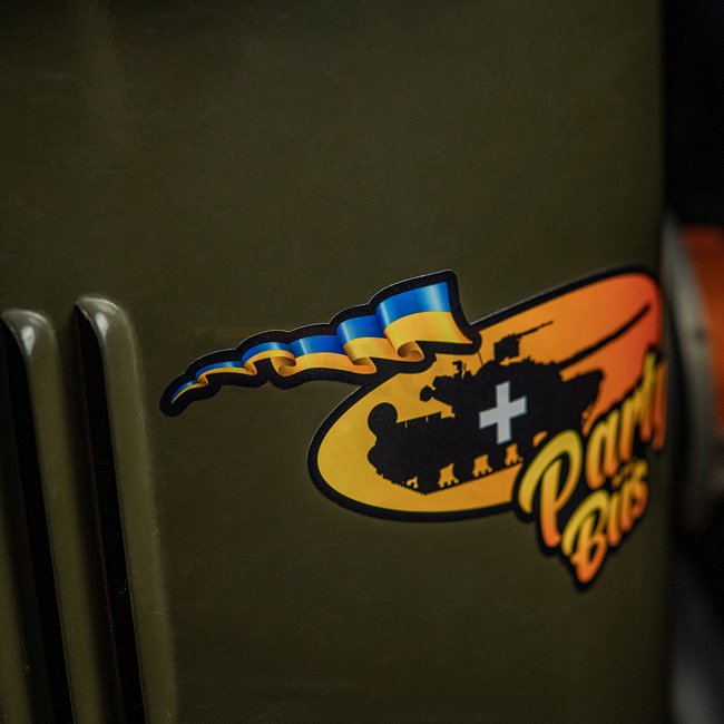 Chaque jour, des drapeaux jaunes et bleus reviennent dans un nombre croissant de villages et de villes ukrainiennes. M-Tac a sorti un autocollant original dédié aux actions de contre-offensive de leurs défenseurs. L'inscription sarcastique "Party Bus" fait allusion à une fête chaude pour les occupants.