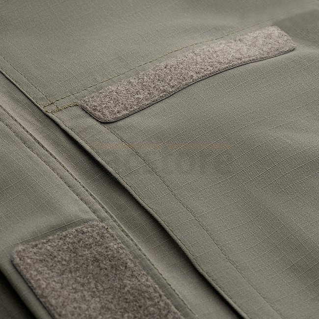 Dans la partie supérieure du dos, il y a un empiècement renforcé avec un panneau velcro pour un marqueur IR sous le col, des plis d'expansion autour des bras aident à maintenir la liberté de mouvement, même lorsqu'un gilet pare-balles est porté. Les manches sont équipées d'une poche coude pour un insert souple. Les poignets sont réglables en largeur à l'aide de fermetures velcro.