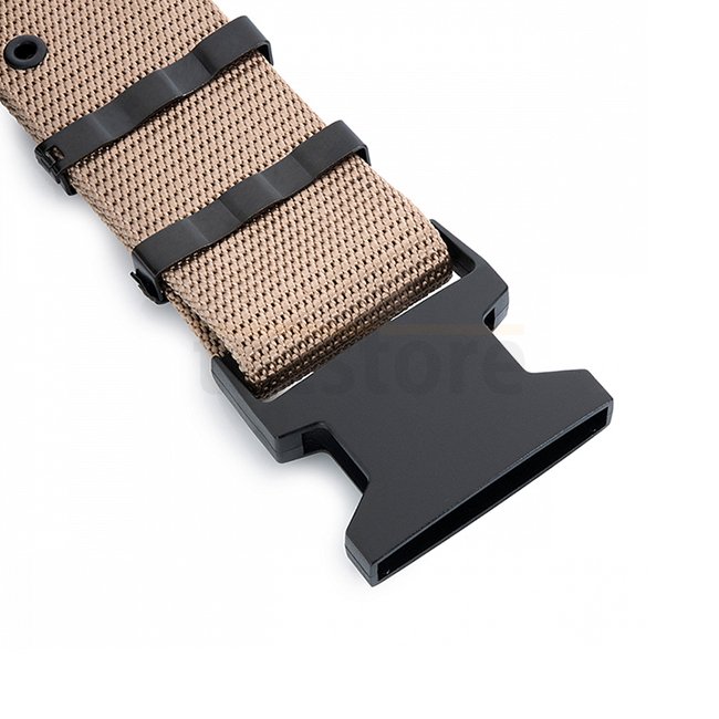 Cette ceinture de pistolet de 5.5 cm de large est une réplique de la ceinture qui faisait partie du système américain BSS (Belt Shoulder System), connu sous le nom A.L.I.C.E. (All-Purpose Lightweight Individual Carrying Equipment), qui a été adopté par l'armée américaine au début des années 80.
