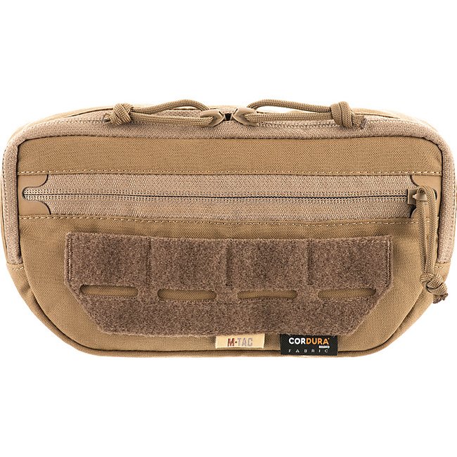 M-Tac Porte-Plaque Sac Accessoire Inférieur Elite - Coyote est une pochette en Cordura 500D conçue pour être attachée au panneau Velcro avant sous le rabat d'un porte-plaque.