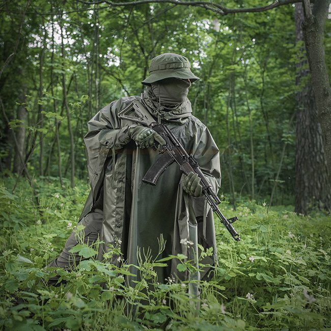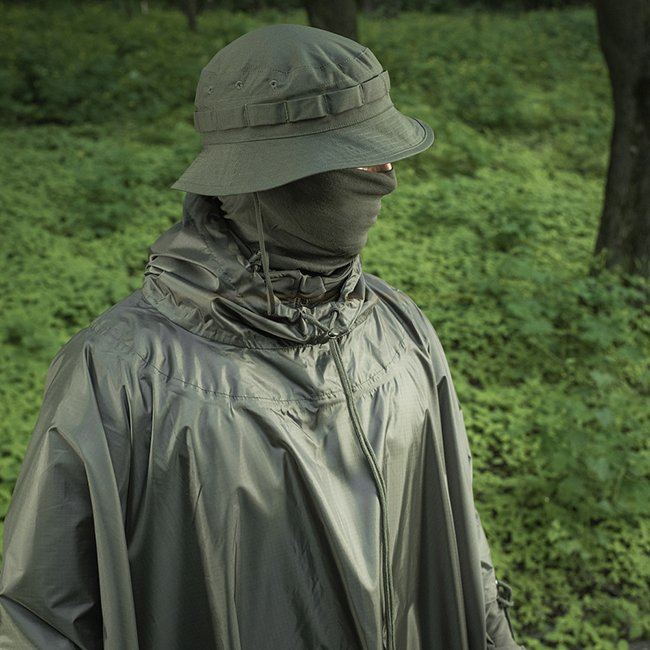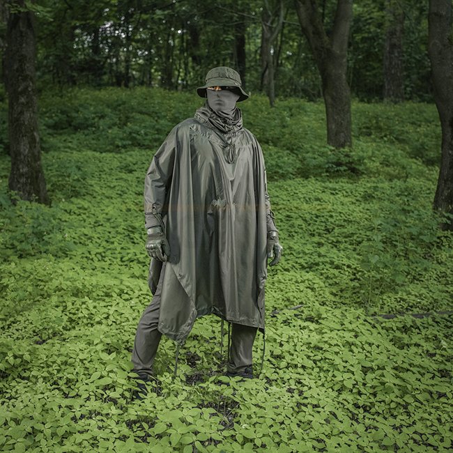 Restez au sec et protégé avec le poncho M-Tac de couleur olive, un vêtement extérieur polyvalent qui fait également office de refuge temporaire ou de tente. Fabriqué en 100 % polyamide, mesurant 210 x 145 cm.