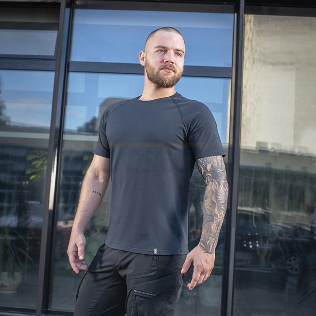 T-shirt raglan M-Tac 93/7 - Bleu Marine Foncé - S. Coupe à manches raglan confortable, tissu respirant de haute qualité. 93% coton, 7% élasthanne. Adapté pour un usage quotidien.