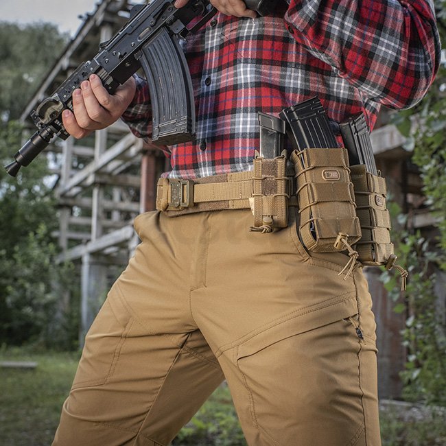 Fabriqué en sangle de nylon solide, résistant aux frottements et aux dommages mécaniques. À l'extérieur, il y a une interface MOLLE qui vous permet d'installer en toute sécurité des équipements supplémentaires. La ceinture est fixée avec une boucle spéciale Cobra 25 mm du fabricant autrichien AustriAlpin, qui peut résister aux charges les plus extrêmes. Il se ferme rapidement et se détache facilement en appuyant simultanément sur les loquets latéraux.