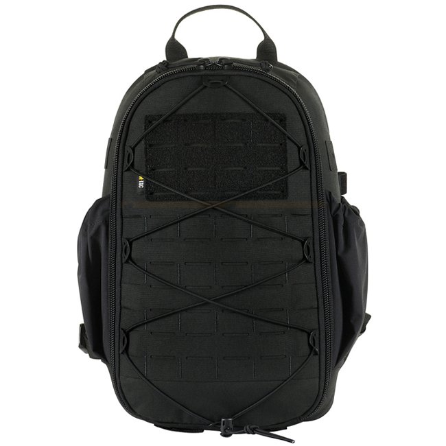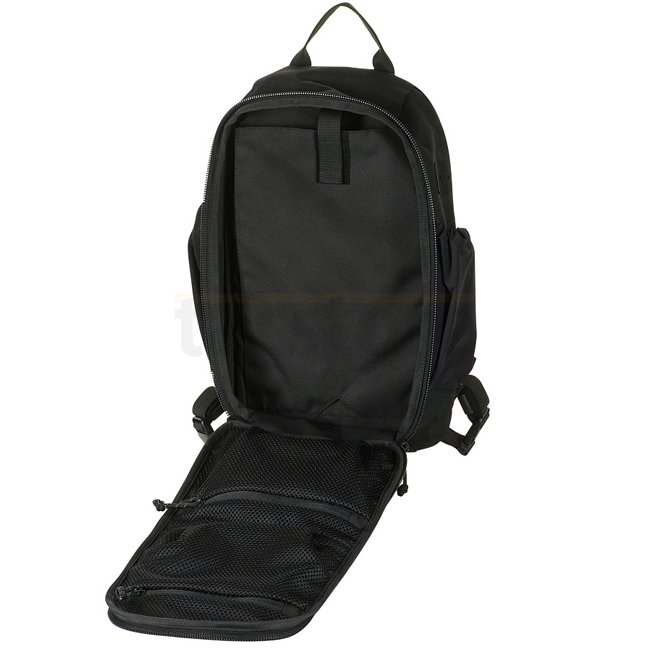 A l'intérieur il y a un compartiment pour un système d'hydratation, et en haut il y a une ouverture pour son tube. Sur le rabat du sac à dos se trouvent deux poches en filet, idéales pour ranger des accessoires EDC. L'avant du sac à dos est équipé d'un système MOLLE Laser Cut, fabriqué en Cordura 500D, qui permet d'attacher du matériel supplémentaire.