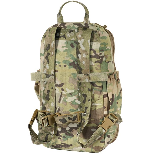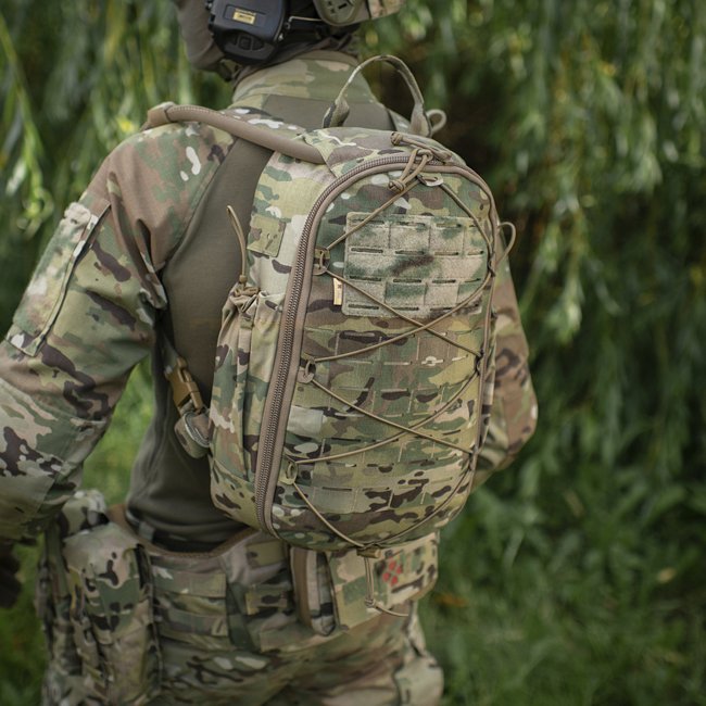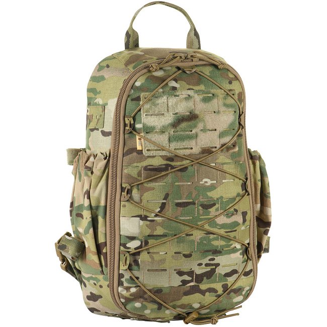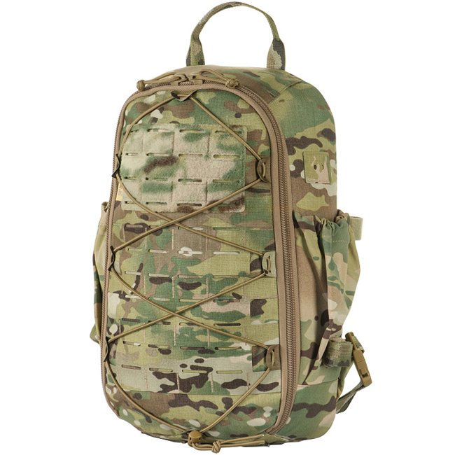Sac à dos M-Tac STURM Elite - Multicam : Sac à dos en Cordura 500D avec un volume de 15L comprenant un compartiment principal, un compartiment pour système d'hydratation, un système MOLLE découpé au laser, et un panneau arrière renforcé. Idéal pour un séj