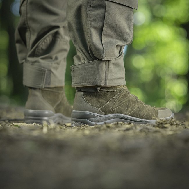 Fabriqué à partir de matériau NyCo durable, ce tissu présente une résistance, une résistance à l'usure et une respirabilité élevées. Les inserts flexibles s'étirent dans les deux sens et garantissent le confort lors d'une utilisation active. Autour des genoux, les concepteurs ont utilisé du Cordura 500D avec des inserts fixes en mousse EVA, qui assureront une protection efficace des articulations du genou contre les chocs et les dommages mécaniques. .