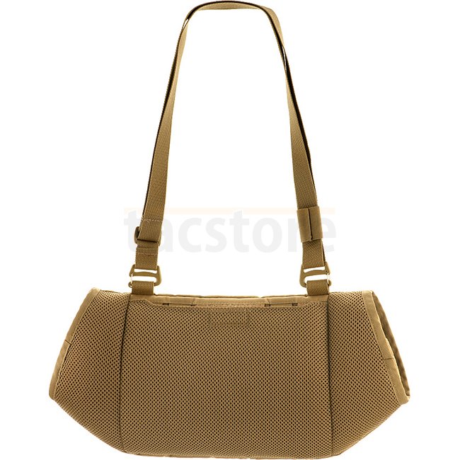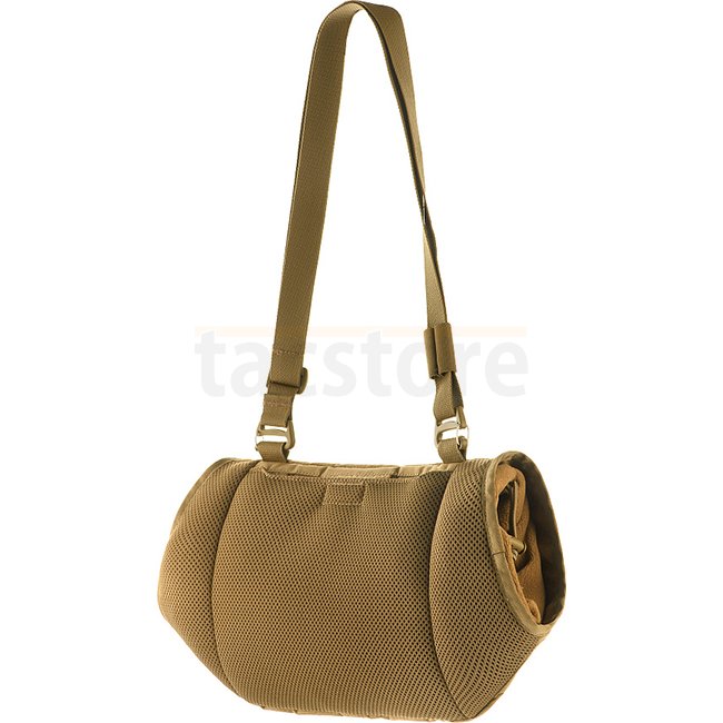 Avec la bandoulière, le manchon peut être porté dans n'importe quelle position ainsi qu'avec une combinaison de vêtements différents. Spécialement destiné aux militaires, ce modèle est équipé d'une bande velcro et conçu pour être fixé sur un panneau velcro sous la face avant d'un porte-plaque. S'il n'y a pas de panneau Velcro sur le gilet, le manchon peut être attaché à un système MOLLE à l'aide de connecteurs en forme de T.