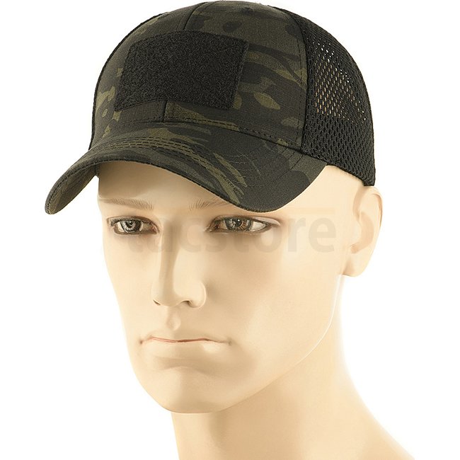 La casquette Tactical Mesh Cap a six panneaux, cousus à partir d'un tissu indéchirable léger et uni, avec une imprégnation en téflon qui protège de l'eau et de la boue. Le dos est fait d'un matériau en maille permettant la circulation de l'air. La visière est dense et garde sa forme. Le fabricant a ajouté un panneau de signature à l'arrière, un panneau Velcro à l'avant, ainsi qu'un panneau Velcro IR sur le dessus. La taille de la casquette peut être ajustée grâce à une bande velcro. Il y a six illets de ventilation sur le dessus de la couronne.