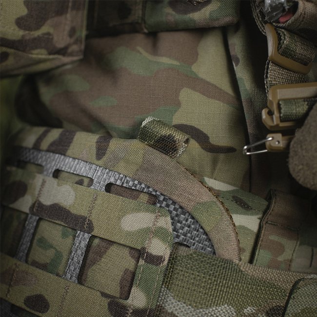 La ceinture est légère et permet une fixation pratique des équipements compatibles MOLLE. Les poches peuvent être sécurisés en tirant les sangles via Cordura 500D (il s'agit d'une option de fixation plus simple et plus rapide) ou via Tegris (cette option offre une fixation plus rigide).