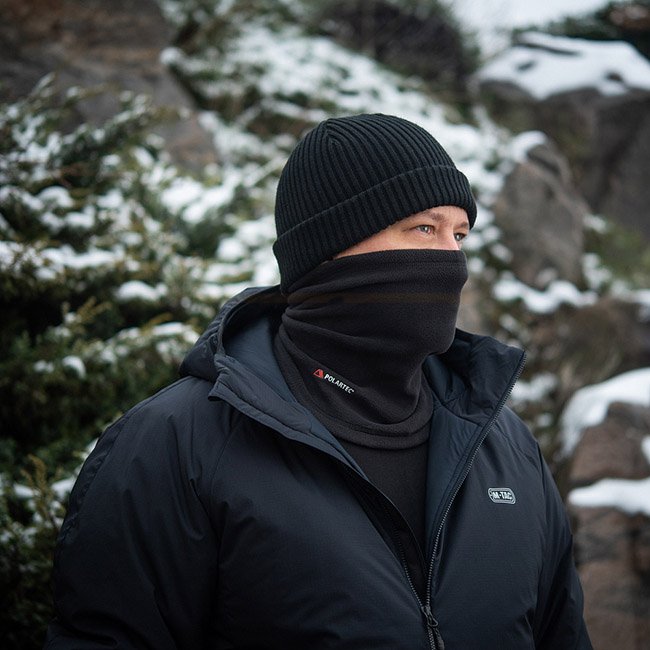 Foulard tube M-Tac Polartec en noir, taille S/M. Accessoire chaud et élégant pour masquer votre visage, vous protéger du vent, de la poussière et de la pluie. Fabriqué en polaire micro Polartec durable. Parfait pour l'hiver.