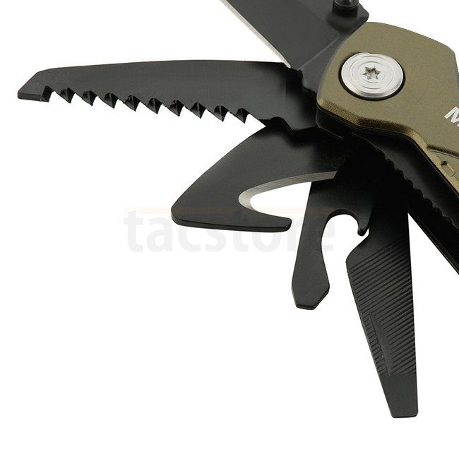 L'ensemble d'outils universels comprend 7 articles : une pince avec coupe-fil, une lame affûtée ordinaire, une scie à main, un tournevis cruciforme, une pince à dénuder et un ouvre-fil.