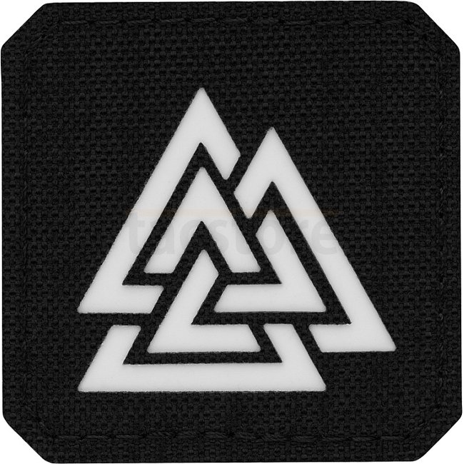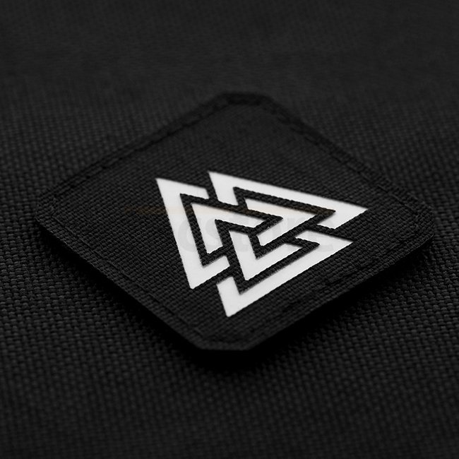 M-Tac Valknut Patch Carré Découpé au Laser - Noir/GID. Matériau Avant: Nylon Cordura 500D. Matériau Arrière: Surface à crochets. Dimensions: 45 x 45 mm.