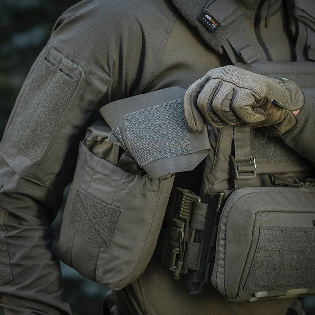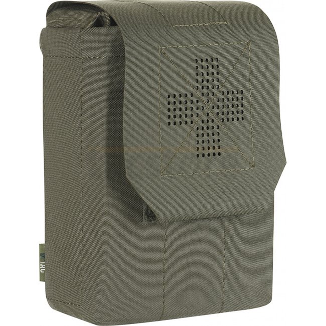 La pochette extérieure est en Cordura 500D - un matériau durable qui résiste à l'abrasion et aux charges élevées. Les parois latérales intérieures sont en nylon élastique, grâce auquel il conserve sa forme. Un élément de fixation supplémentaire est une sangle qui vous permet de maintenir en toute sécurité la trousse de premiers secours, même pendant l'activité. Se fixe à l'équipement à l'aide de l'interface MOLLE.