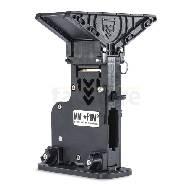 Ce chargeur à alimentation par trémie de Mag Pump Pro est conçu pour réduire le temps de chargement des magazines de plus de 50%. Il trie automatiquement les munitions dans les deux sens, permettant de charger jusqu'à 60 cartouches en moins d'une minute.
