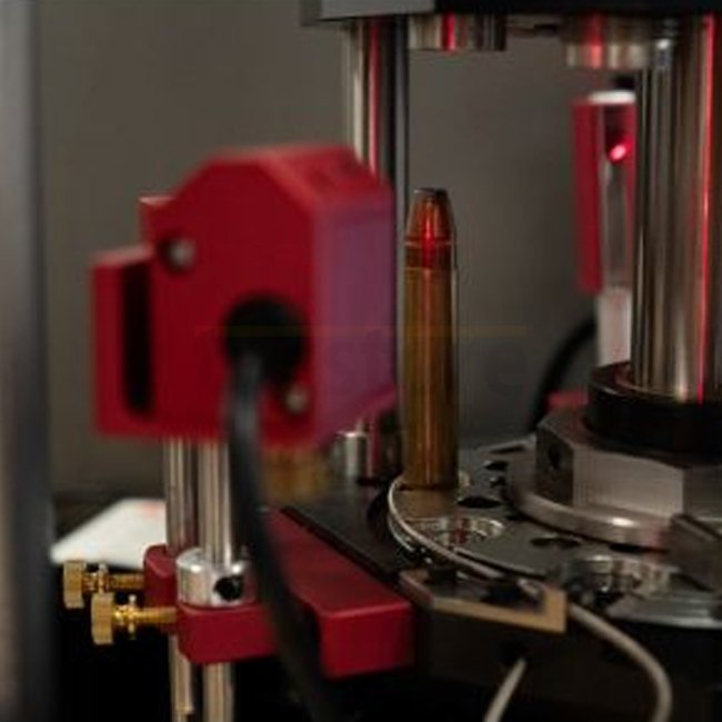 Le capteur Mark 7 BulletSense est un capteur optique intelligent conçu pour détecter si un projectile est correctement positionné dans l’étui avant son passage à l’étape suivante. Il se monte directement à la station de sertissage du projectile et est compatible avec les presses Apex 10 et Evolution. Le système détecte les projectiles manquants ou mal insérés et arrête immédiatement le cycle de rechargement, évitant ainsi tout dommage à la presse ou cartouches défectueuses. Il améliore ainsi la sécurité du processus et la qualité des munitions chargées – en particulier en automatisation.