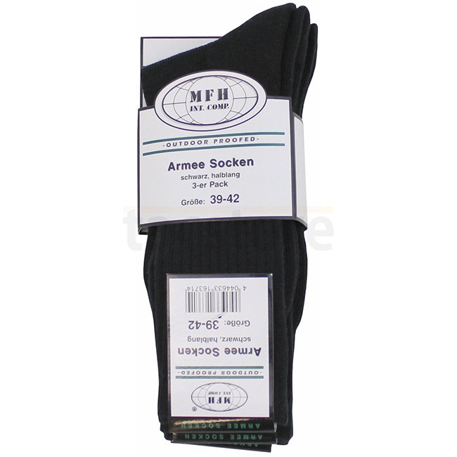 MFH Army Socks Medium-Long 3-Pack - Black - 39/42