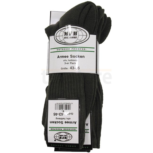 MFH Army Socks Medium-Long 3-Pack - Olive - 39/42