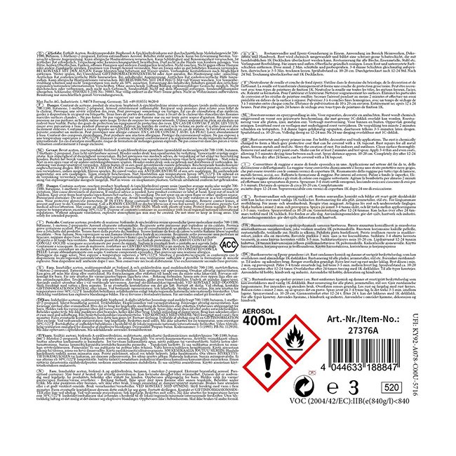 Peinture en spray MFH Armée Convertisseur de rouille 400 ml - Convertisseur de rouille et apprêt époxy en un, convertit chimiquement la rouille en une couche protectrice noire-grise. Convient à tous les types de métal, à l'intérieur comme à l'extérieur. R