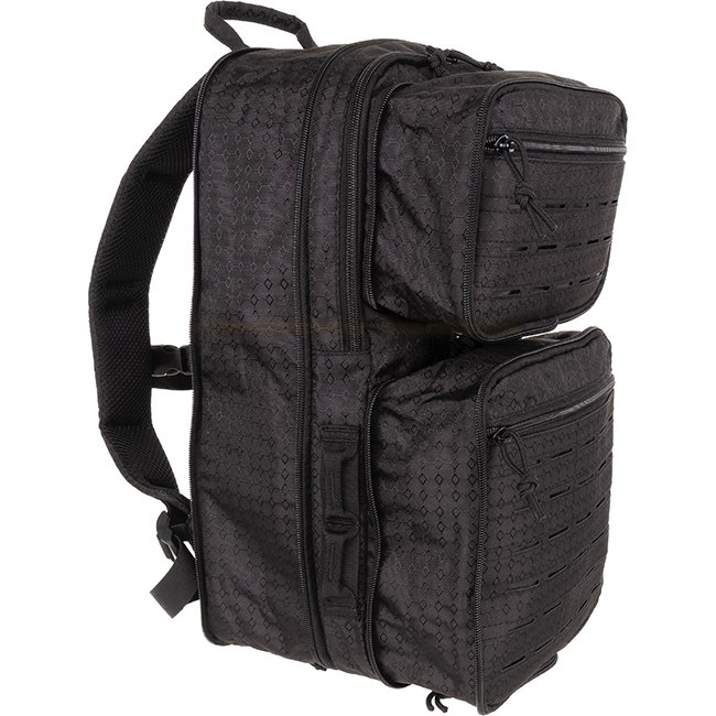 Sac à Dos MFH Compress OctaTac - Noir : Bretelles réglables et rembourrées, anneaux en D, sangle de poitrine, rembourrage en maille respirante, multiples poches zippées, boucles d'attachement Molle, design découpé au laser. Capacité : 7-15L. Dimensions :