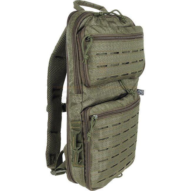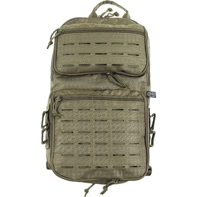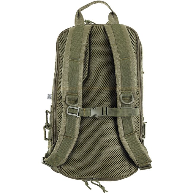 Sac à dos compact et polyvalent avec des bretelles réglables, des rembourrages et plusieurs poches pour un rangement pratique. Comporte une poignée de transport supérieure, une sangle de poitrine, et des boucles d'attachement Molle pour personnalisation.
