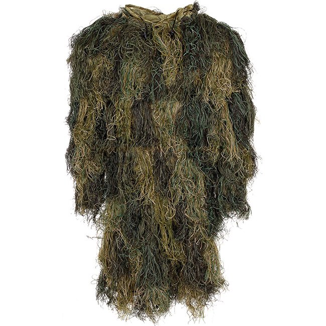 Parka de camouflage Ghillie MFH - Woodland - XL/2XL. Manteau avec patte de boutonnage, capuche, 2 fausses poches, cordon élastique avec arrêt de cordon sur la capuche, cordon élastique aux extrémités des manches. Matériau : 100 % polyester, fils ignifuges