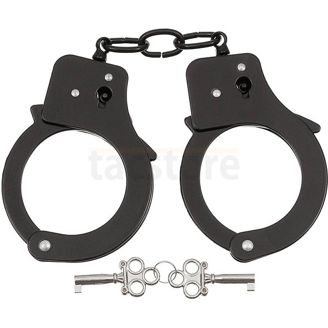 Menottes MFH - Noir. Avec chaîne de liaison et roulement pivotant. Longueur : environ 27 cm. Matériau : Acier / Alliage de zinc, chromé.