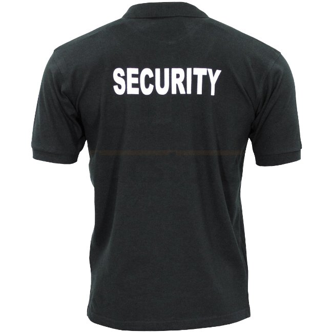 Polo de Sécurité Imprimé - Noir - 2XL avec inscription "SECURITY" au dos et sur la poitrine, en mélange de coton/polyester. Comporte une patte à 3 boutons, un col et des poignets en tricot, une double couture et des fentes latérales renforcées.