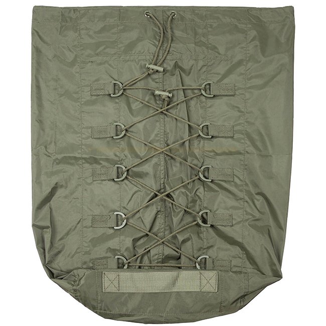 Sac de couchage MFH - Sac de compression - Olive. Réplique du sac de compression de l'armée allemande avec cordon de serrage, arrêtoir, 10 anneaux en D, couverture cousue, poignee de transport. Diamètre : 35 cm. Hauteur : 64 cm. Poids : 300 g. Fabriqué en