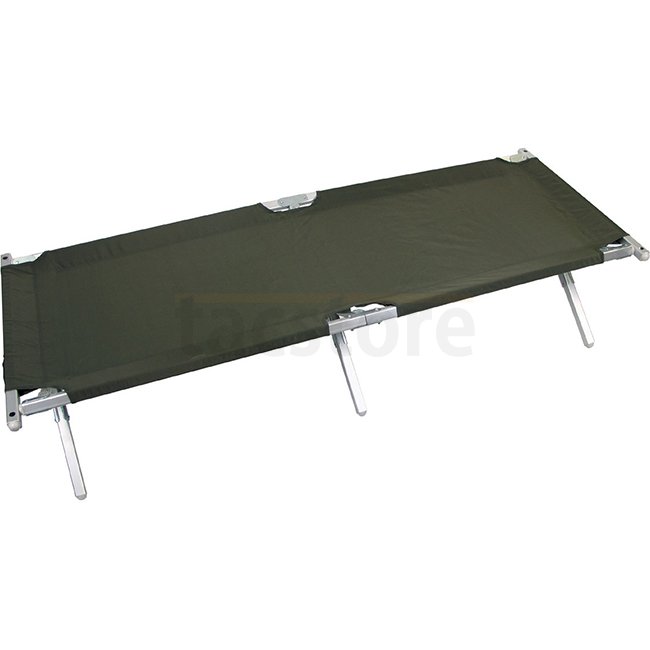 Lit de camp MFH US Army polyvalent et durable en couleur Olive. Cadre en aluminium avec une charge max. de 160 kg. Taille de pack compacte et léger à 6,7 kg. Couverture en nylon et matériau du cadre en aluminium.
