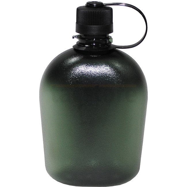 MFH US Canteen GEN2 1l - Olive. Plastique transparent adapté au congélateur, au micro-ondes et au lave-vaisselle. Plage de -20¯C à 100¯C. Échelle en ml et oz. Inodore, sans changement de goût. Capuchon à vis, 12 x 21 x 6,5 cm, 150g. 100% Polycyclohexandim
