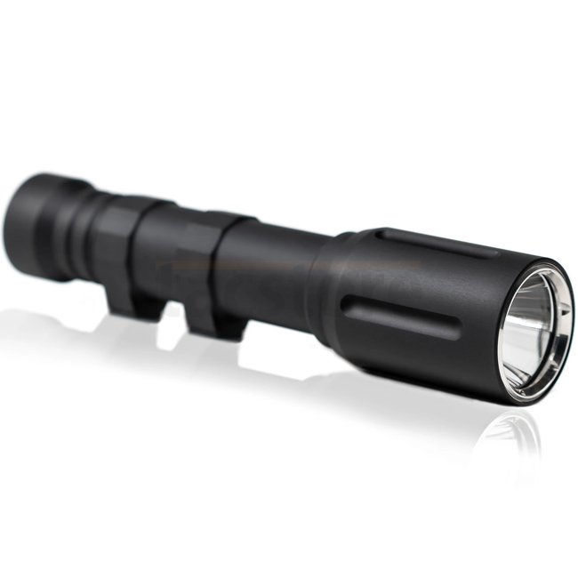 Modlite IR940-18650 complet, compact et puissant, en finition noire élégante. Mode d'activation momentanée et boîtier en aluminium 6061 durable. Le paquet comprend la lampe, une batterie 18650 de 3500mAh, et un chargeur XTAR MC2. 136,5 x 25,4 mm avec un p