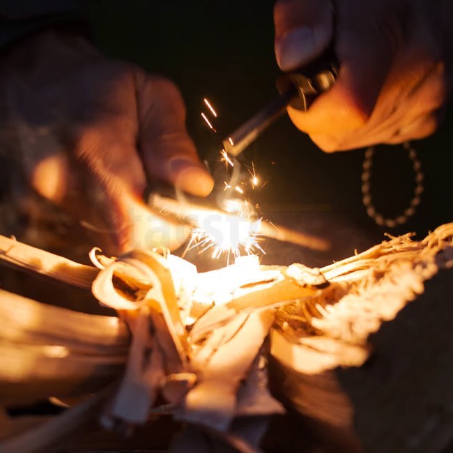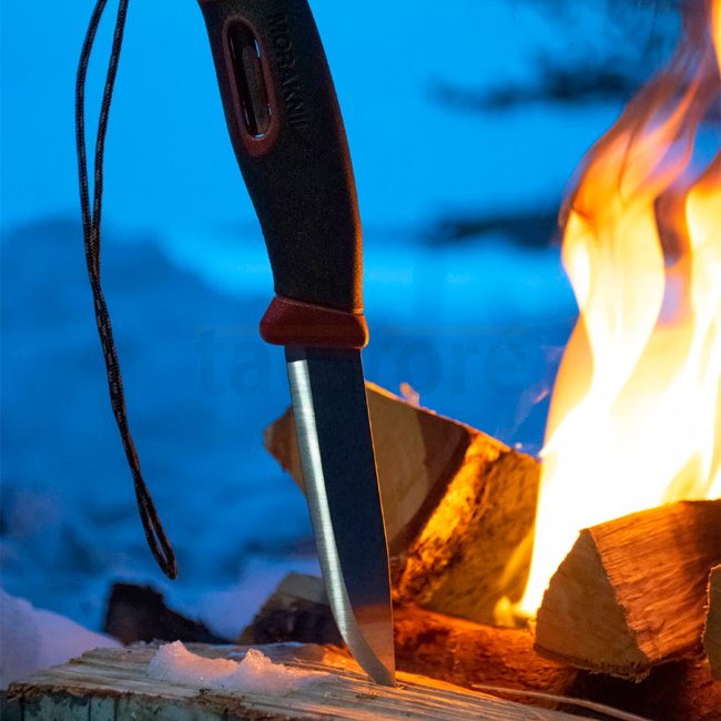 Companion Spark (S) de Morakniv est une version compacte du célèbre Companion, dotée d’un démarreur intégré. La lame en acier inoxydable Sandvik 12C27 d’environ 2,5 mm d’épaisseur (dureté ≈ 57–58 HRC) présente un biseau Scandi et une arête dorsale à 90° pour une utilisation au briquet à percussion. Le manche ergonomique en polymère dissimule un ferrocerium extractible, muni d’un cordon paracord réfléchissant pour faciliter sa localisation.