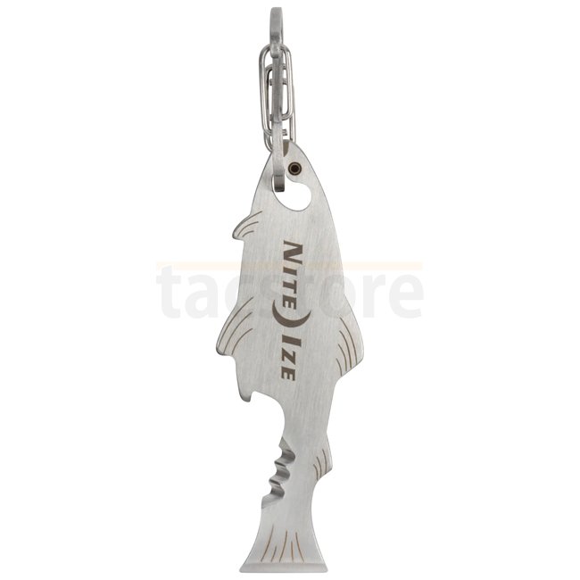Outil de clé DoohicKey FishKey de Nite Ize - Outil multi-usage de la taille d'une clé avec un design en forme de poisson, ouvre-bouteille, bord dentelé et tournevis. Attachable de manière pratique avec un S-Biner en acier inoxydable.