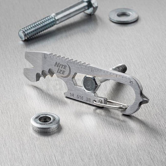 S'appuyant sur l'ingéniosité de l'original, le DoohicKey+ amplifie les outils et fonctionnalités inclus pour offrir une utilité et une polyvalence améliorées. Qu'il s'agisse d'arracher des clous, de serrer des boulons, de couper des boîtes ou d'ouvrir une bière froide après une longue journée, le DoohicKey+ fait tout. Avec un arrache-clou/dégrafeur intégré, un bord dentelé, une pointe de marquage et un tournevis à tête plate à une extrémité, vous pouvez vous attaquer à des réglages mineurs dans la maison. Pendant ce temps, l'autre extrémité contient une tête Phillips, une règle, une clé et un décapsuleur pour mesurer et fixer en déplacement, avec un mousqueton pour rassembler le tout et permettre un transport facile.