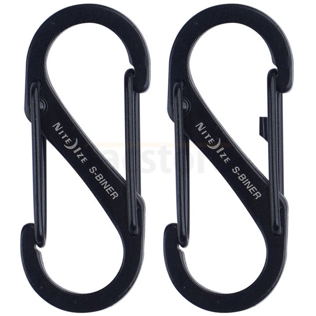 Nite Ize Double Mousqueton Acier Inoxydable #1 - Noir - ensemble de mousquetons solide et pratique pour diverses utilisations, non destiné à l'escalade