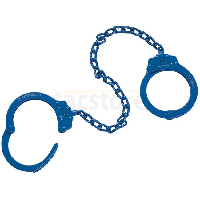 Modèle Peerless 753C Menotte de jambe 15 - Marine : Construction entièrement en acier, chaîne de 38 cm pour une amplitude de mouvement limitée, mécanisme de verrouillage interne amélioré pour une résistance accrue au sabotage. Garantie à vie, finition EPP