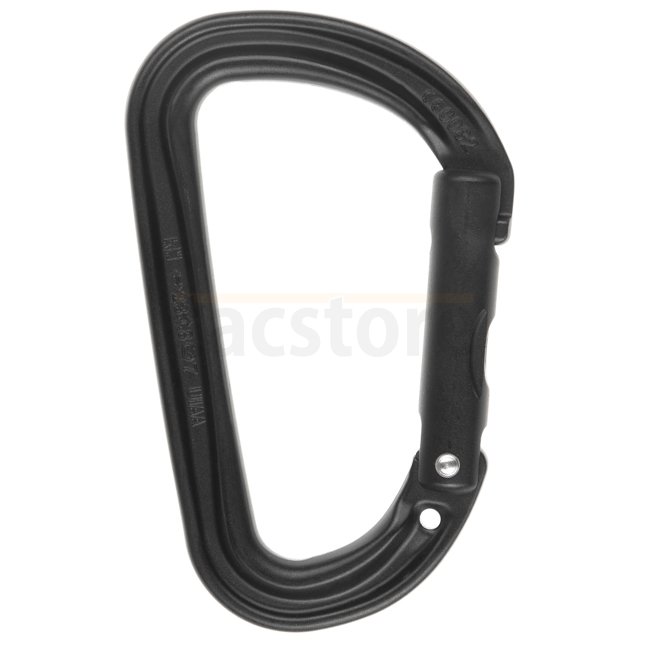 - SCREW-LOCK : verrouillage manuel à vis avec témoin visuel rouge lorsque le mousqueton n'est pas verrouillé,