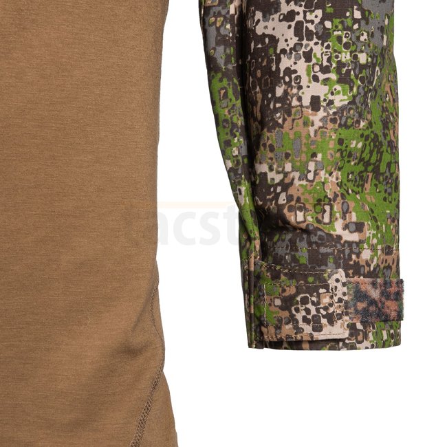 Les poches sur le haut des bras sont intégrées dans les manches, elles ne sont donc pas trop volumineuses, ce qui permet un profil compact. De généreuses surfaces Velcro permettent de fixer des patchs des deux côtés. Le velcro a été séparé verticalement afin que les zones puissent être pliées anatomiquement autour de la partie supérieure du bras. Dans la zone des coudes, il y a des compartiments pour insérer des coudières. Une conception extra longue garantit que la chemise ne glisse pas du pantalon lorsque vous vous penchez ou vous agenouillez.