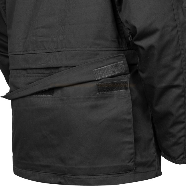 • Capuche Ajustable: La capuche peut être ajustée en circonférence et en hauteur, s’adaptant confortablement aux casques balistiques.