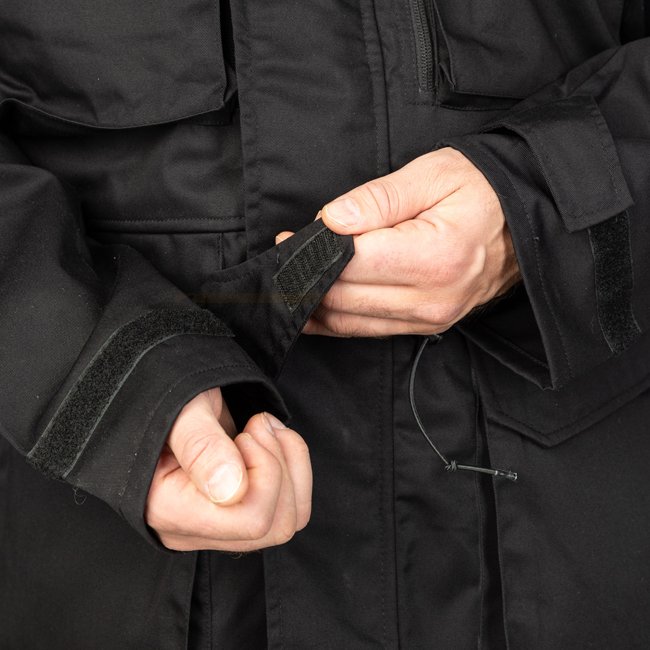 • Manchettes Réglables et Manches Larges: Les manchettes sont ajustables, les manches larges facilitent l’enfilage de la veste avec des gants ou des moufles.