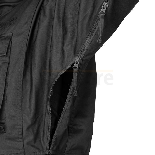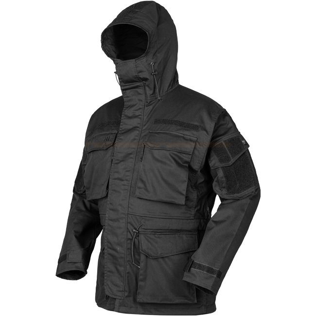 La veste Commando Pitchfork en Noir - Taille S est une veste robuste et polyvalente conçue pour les utilisateurs exigeants. Conçue pour durer avec un matériau PolyCotton durable, cette smock dispose d'une capuche ajustable, de cordons élastiques et d'un s
