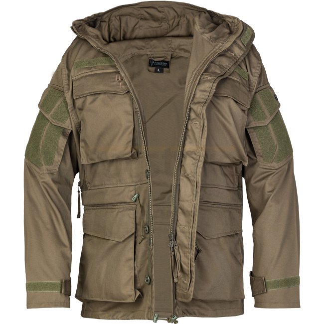 • Capuche Ajustable: La capuche peut être ajustée en circonférence et en hauteur, s’adaptant confortablement aux casques balistiques.