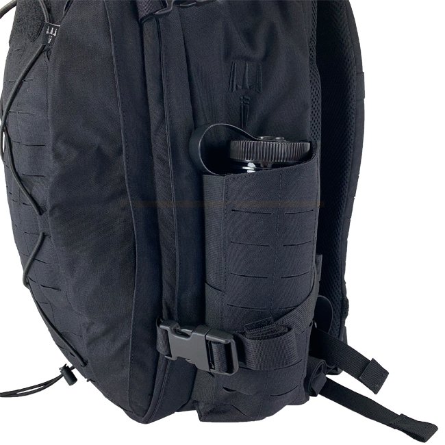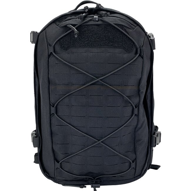 Une grande surface découpée au laser permet l'installation des poches basés sur le système MOLLE sur le sac à dos pour augmenter encore sa capacité. En option, un cordon de choc zigzague sur toute la face arrière créant un filet pour contenir des objets légers comme une veste. Sur le dessus, il est maintenu en place par un crochet avec des capacités détachables rapidement et sur le fond, le cordon de choc peut être enroulé à travers un œillet et fixé par un arrêt de cordon.