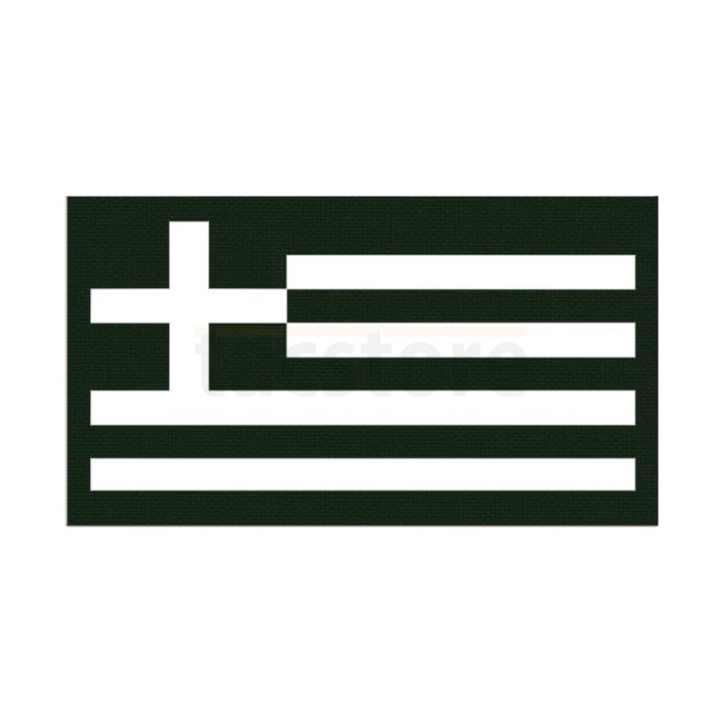 Fourche à foin Grèce IR Écusson imprimé - Coyote. Avant : feuille IR, Arrière : surface à crochet. 90 x 50 mm.