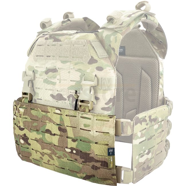 Le Pitchfork MCR Modular Chest Rig Base - Multicam est une base polyvalente pour les gilets de poitrine personnalisables. Fabriqué en Cordura 500D Nylon & Laminate découpé au laser, avec fermeture éclair YKK. Taille compacte : 330 x 150 mm.