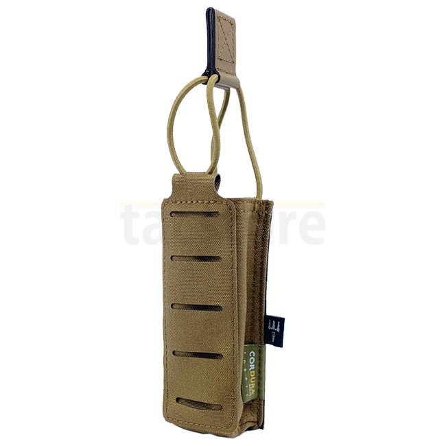 Porte-chargeur SMG simple Pitchfork Open - Coyote, pour chargeurs MP5, MP9 et pistolets longs. Languette ajustable en Hypalon, doublure anti-dérapante, système MOLLE découpé au laser à l'avant, Nylon Cordura 500D et matériel Hypalon, résistance extrême et
