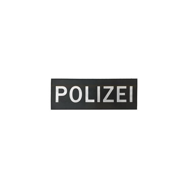 Petit écusson Polizei à petites dents - écusson en caoutchouc de 30 x 90 mm avec dos velcro, design blanc sur noir.