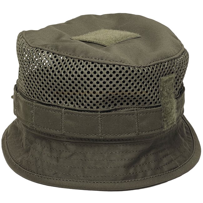 Tout en conservant la forme classique du chapeau boonie Soldier 95 des forces armées britanniques, la couronne est maintenue à plat pour un profil bas. Un tissu en maille est utilisé tout autour, ce qui permet une circulation d'air maximale. Sur la partie supérieure, une surface de boucle de 50 x 50mm peut être trouvée pour attacher un patch réfléchissant infrarouge. Autour du chapeau, nous avons utilisé le même matériau nylon-coton au lieu d'une sangle rigide, garantissant ainsi une signature infrarouge faible. Sous la circonférence, un cordon de serrage est cousu, ce qui permet un réglage de la taille. En continu pour un ajustement parfait, en maintenant la taille choisie à l’aide d’un bloqueur de cordon à l’arrière. Le bord est extrêmement étroit et descend selon un angle prononcé. Toutes les autres caractéristiques des modèles standard, telles que la mentonnière ou un protège-nuque, ont été laissées de côté. Fonctionnalité par simplicité.